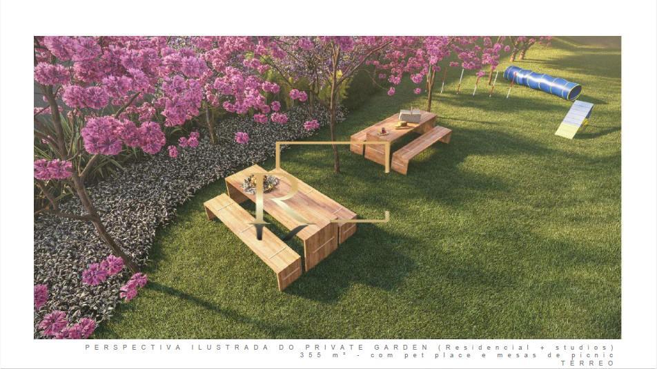 Private Garden com pet place e mesas de piquenique ? um refúgio verde de 355 m² compartilhado entre residenciais e studios .