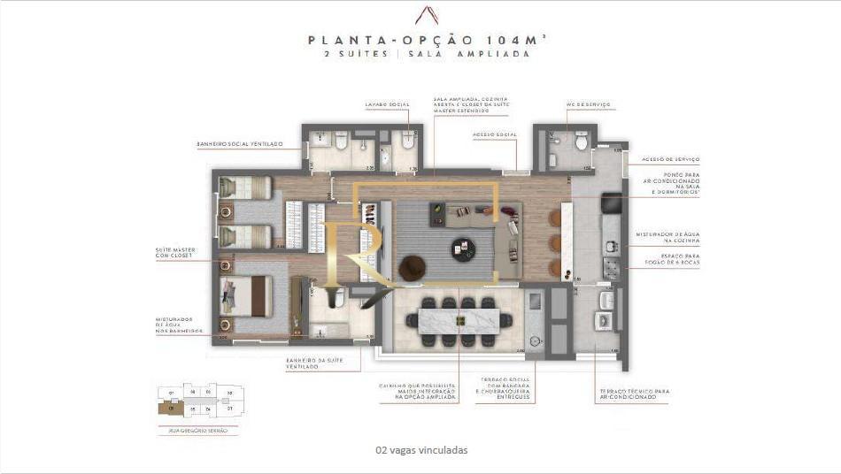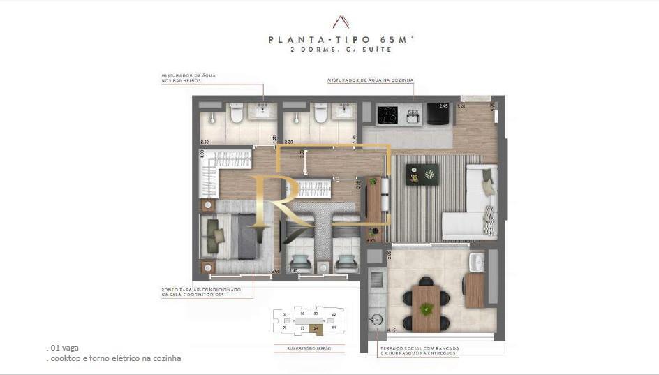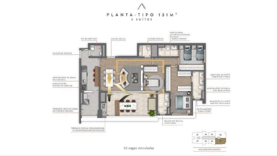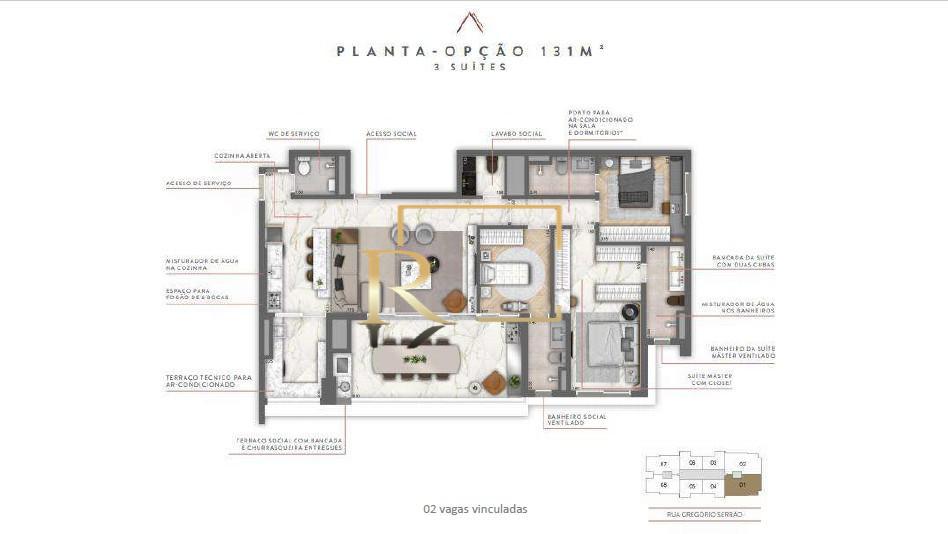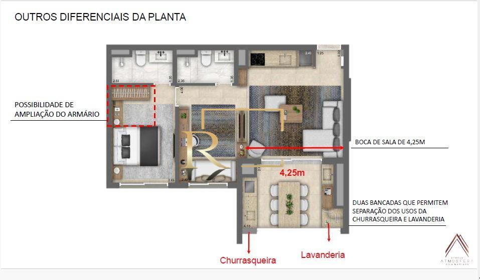 Todos os aptos contam com diferenciais como: opção de modificar a planta (living ampliado e cozinha aberta), terraço gourmet com churrasqueira nos aptos de 131 m², quartos amplos com flexibilidade para 2 camas, infraestrutura para ar-condicionado nos dormitórios e no living, iluminação natural em todos ambientes e muito mais!