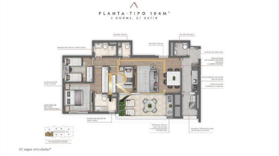 Opções com 1 ou 2 vagas vinculadas, conforme tipologia