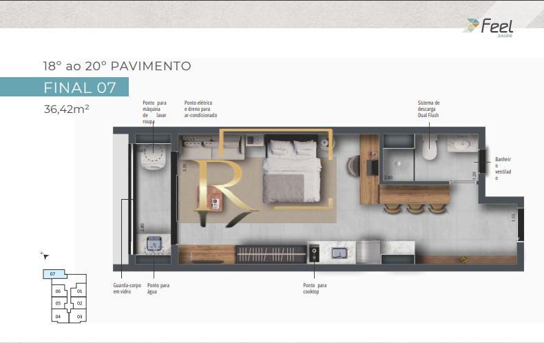 Por isso, oferece diversas tipologias: studios, 1 ou 2 dormitórios, unidades com ou sem terraço todas planejadas para aproveitar cada centímetro, com conforto, beleza e funcionalidade.